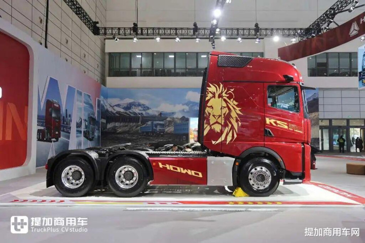 豪沃KS的驾驶室白车身是在汕德卡曼技术模具的基础上进行升级而成的,但是它换了一套全新的覆盖件这就导致你不仔细去观察各个零部件的比例就很难去发现这个问题,但是如果看车顶,包括保险杠与格栅的尺寸比例,也还是能发现一部分身影的。豪沃KS的侧面带了拉花,有英文标识和狮子头像,狮子头像,你细品。