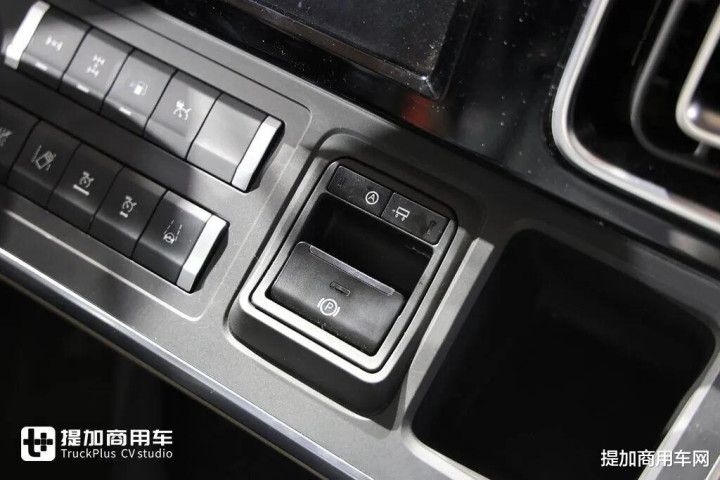 车内按键焕新升级电子按键,手刹同样采用电子手刹,带有AUTO HOLD和挂车刹的控制。