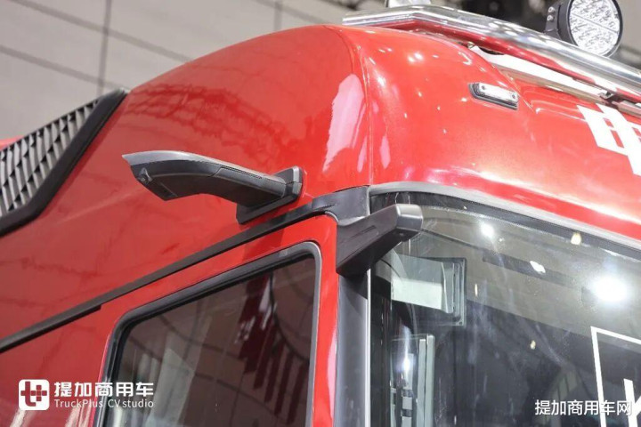 顶配车型为电子后视镜+下视镜,在夜间对后方的观察效果要比传统物理后视镜更清晰一些,同时也能降低风阻。如果你们熟悉汕德卡的话,看一下车顶的小示廓灯,就知道豪沃KS驾驶室的来源了。