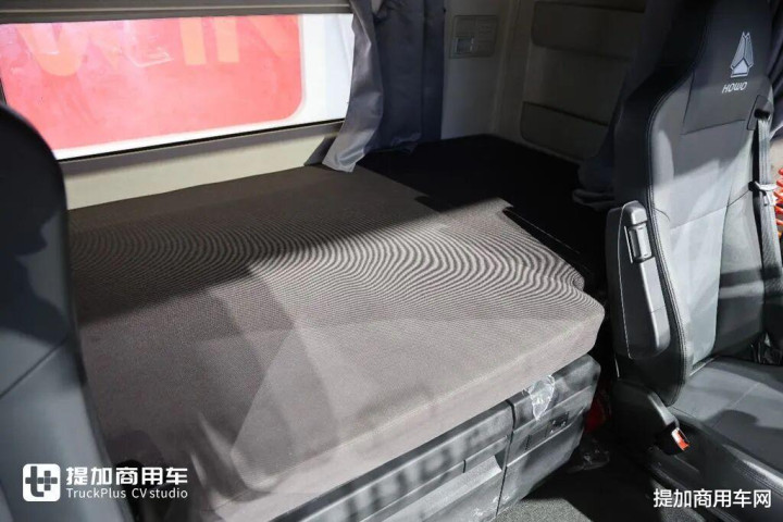 卧铺的最大宽度为1.2米,即便是气车也不会因为后背气瓶缩减卧铺尺寸,同时卧铺垫的填充更足,厚度要厚一些,但是也不至于软的让驾驶员睡不着觉。