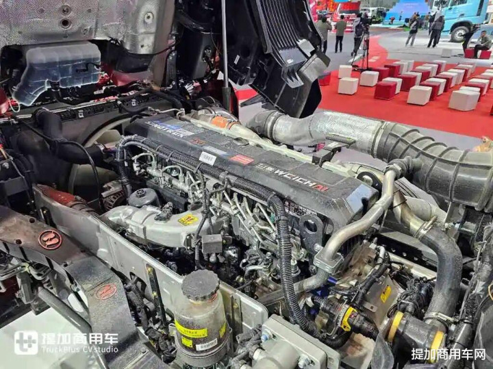搭载曼技术发动机的是MC13H型号的满血版13升曼机,目前我看到的展车有570马力和620马力两款,570马力是机型扭矩为2700N.m,620马力的扭矩现场没有公布,后面有资料第一时间报道。